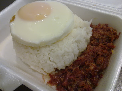 I ordered corned beef meal with plain rice and iced tea and J ordered sausage and egg pandesal with coffee. Our order supposedly comes with a free newspaper to be claimed at the next window. However, when we were at the next window, the crew informed us that they ran out of newspaper...boo!